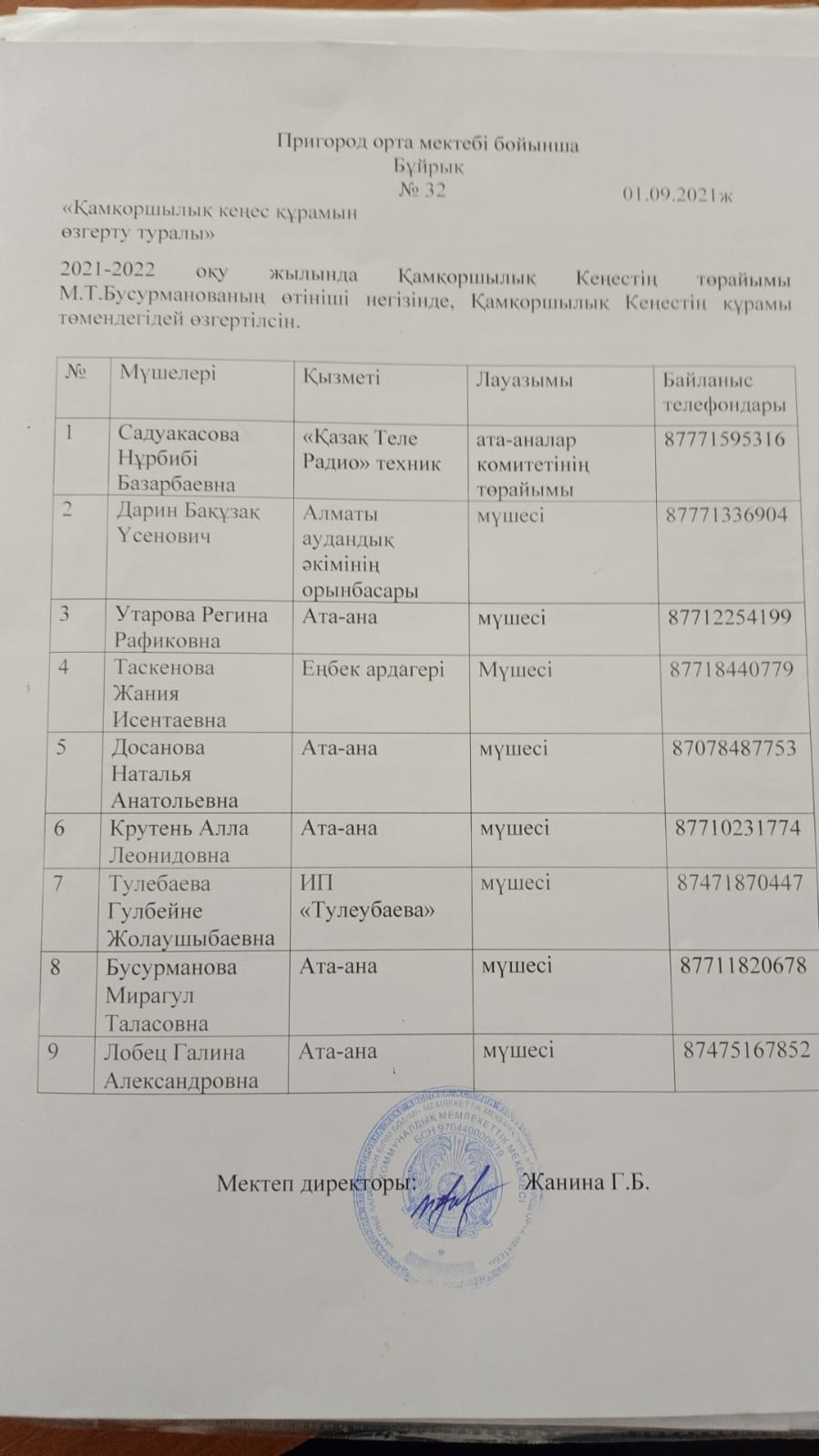 "Ақтөбе қаласының білім бөлімі" ММ "Пригород орта мектебі" КММ