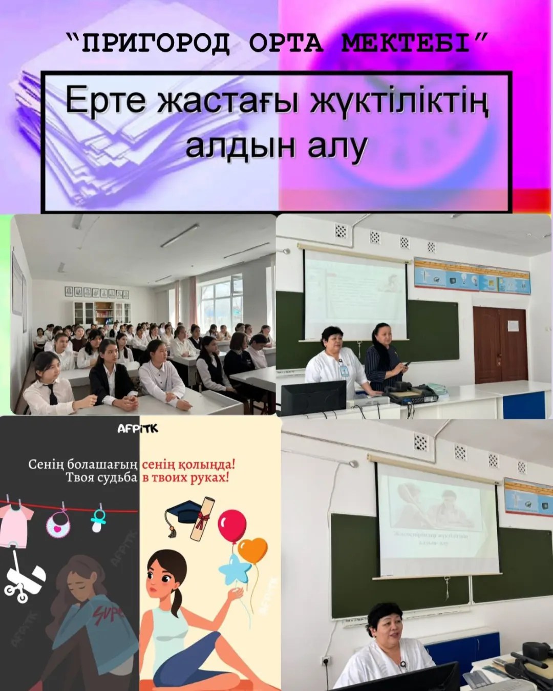 2 сәуір күні, 7-11 сынып қыз балалар арасында “Қыз балалар тәрбиесі және ерте жүктіліктің алдын алу” тақырыбында бірыңғай тәрбие сағаты өтті. Тәрбие сағатына мектеп медбикесі Сагиева Л.Ж. түсіндірме жұмысын жүргізіп сұрақтарға жауап берді.