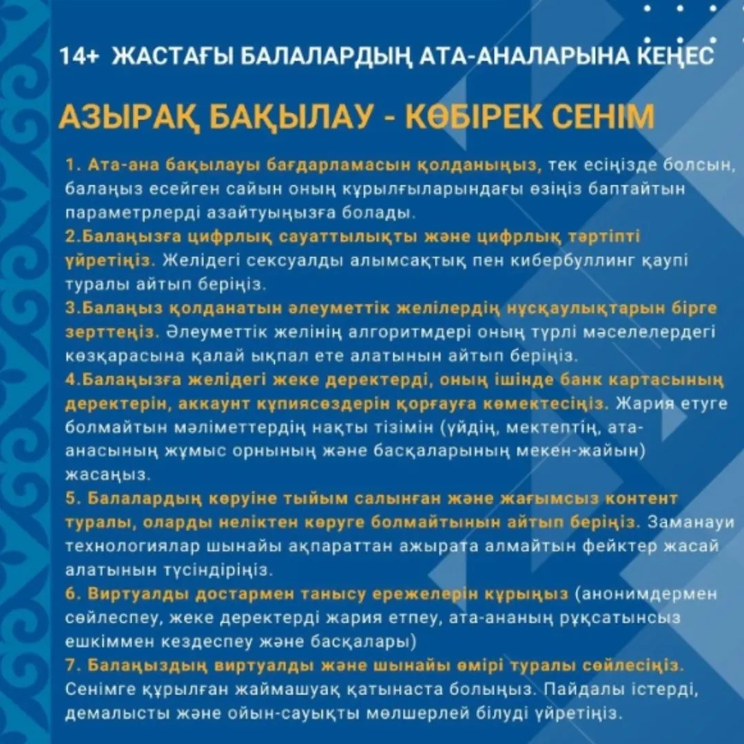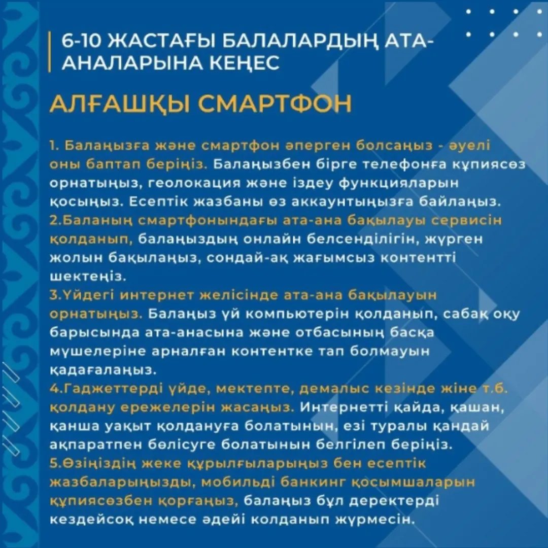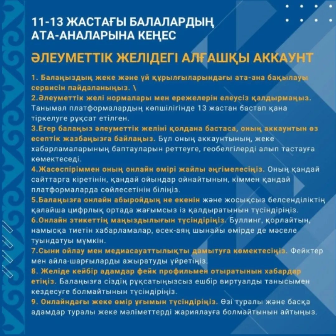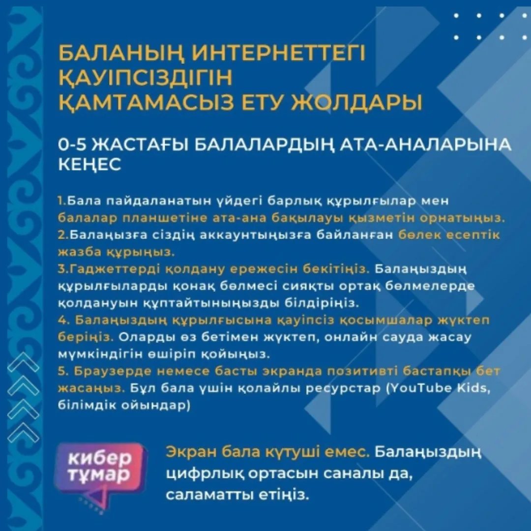 Ата-аналарға балаңызды өмірінің түрлі кезеңдерінде онлайн кеңістікте қалай қорғау керектігі туралы ұсынымдар