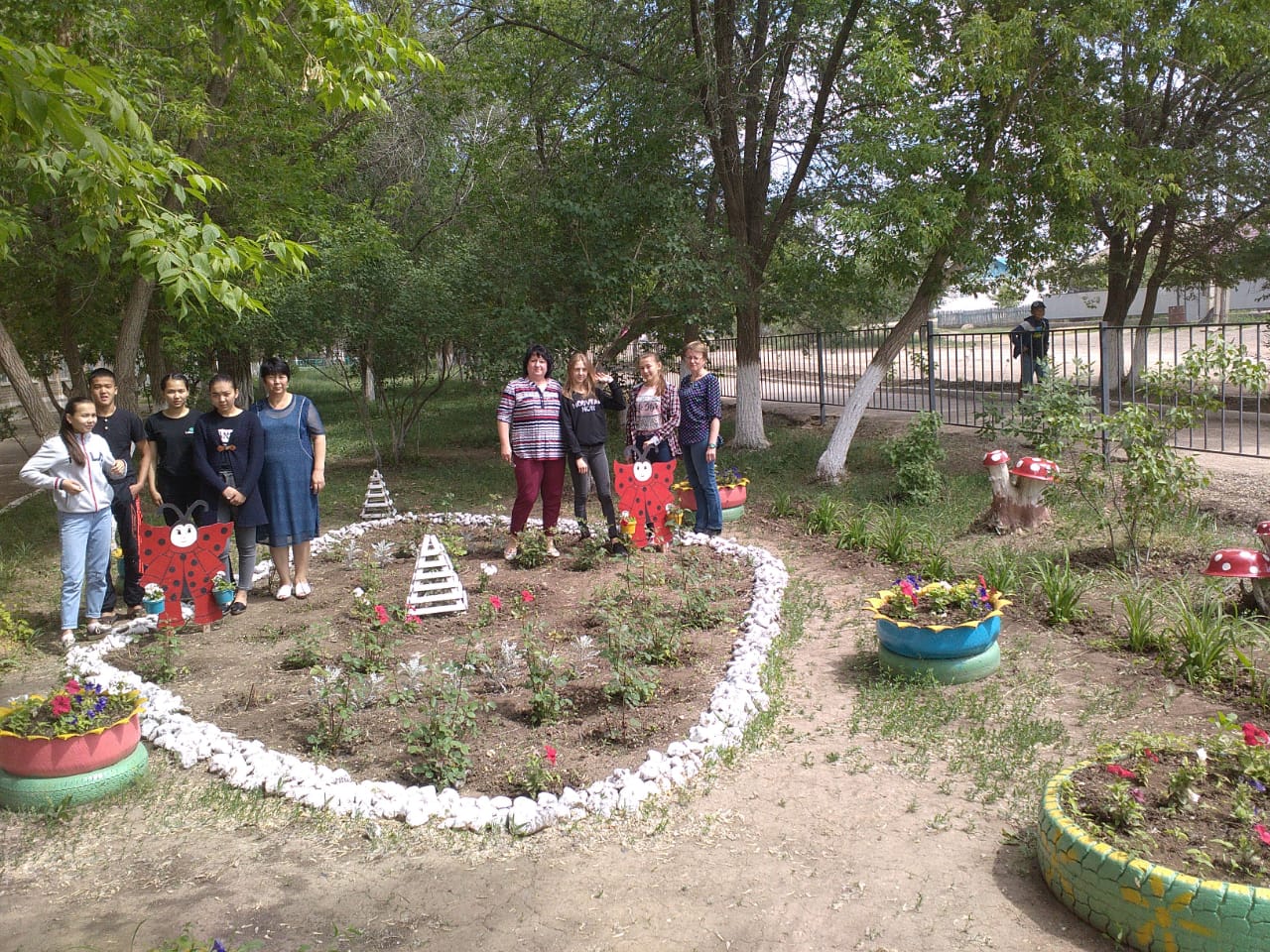 Класс жетекшілер: Б.С.Байдовлетова мен Т.И.Фалалеева басшылығымен аулаға саңырауқұлақтар мен "қанқызы" бейнесін орнатты.