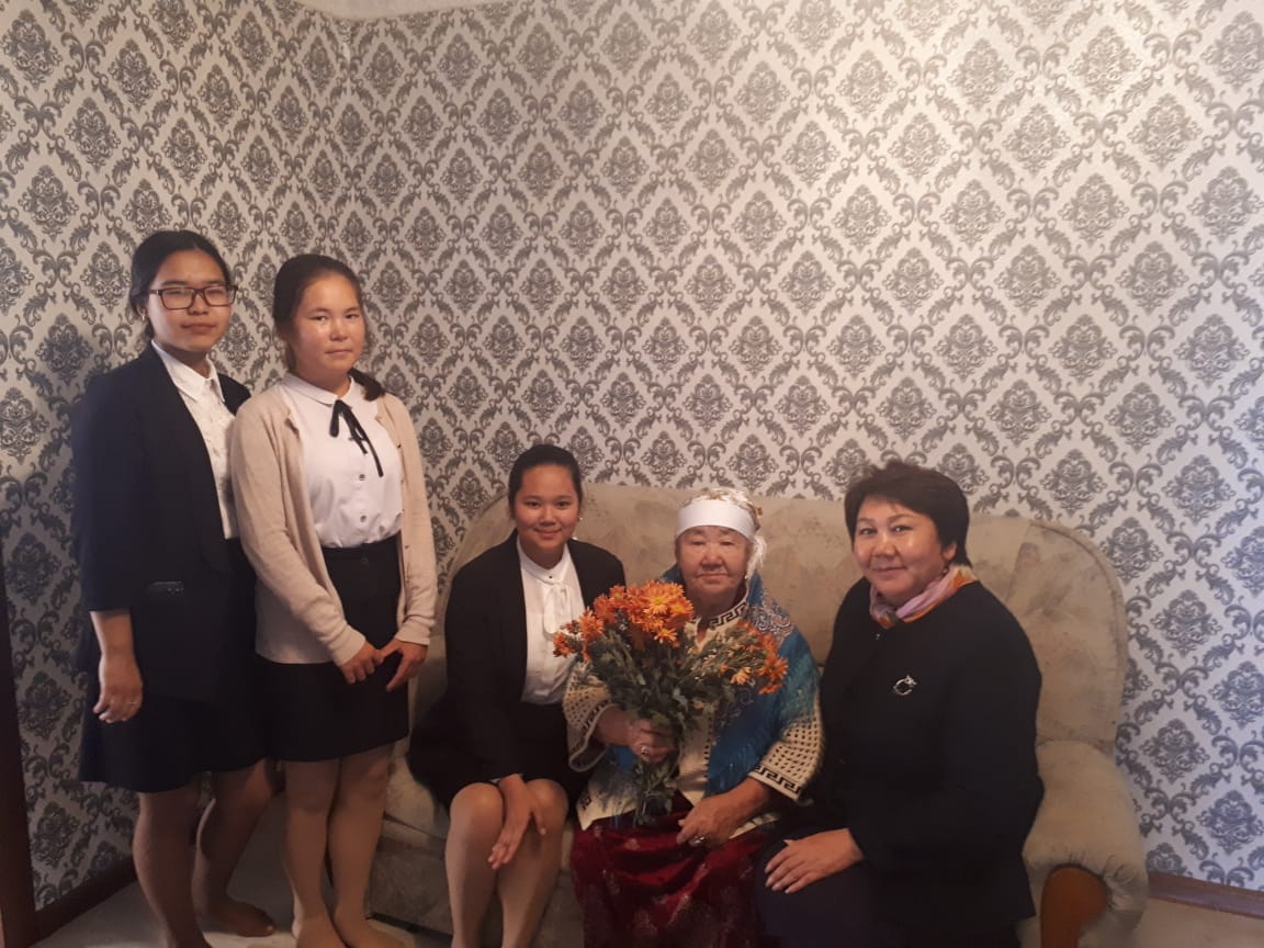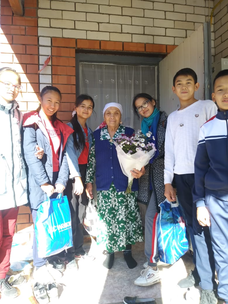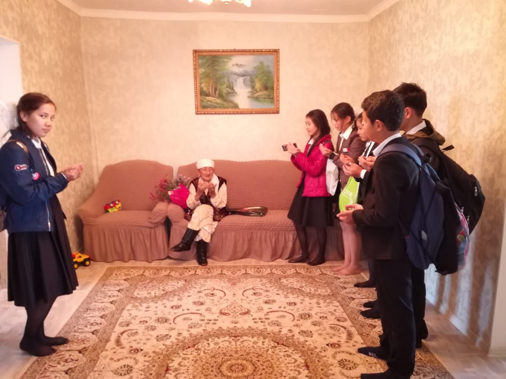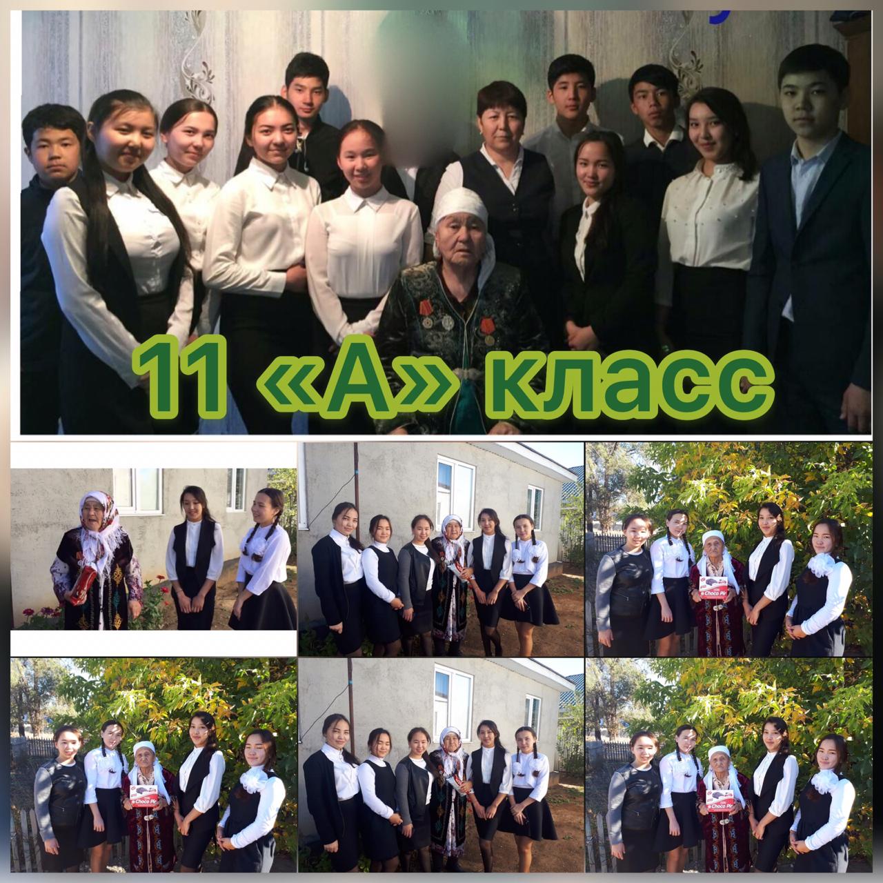 "Қарттарым- асыл қазынам" демекші 11"А" сынып оқушылары 1- қазан күні ауылымыздың қариялары: Иносова Ибагүл мен Көбен Ақжарқынды мерекесімен құттықтады. Оқушылар үлкен кісілерге көңіл бөліп, жылы лебіздерін білдірді. Көнекөз қарттар балаларға мейірімдерін төгіп, алғыстарын білдірді. "Баталы ер- көгерер" дегендей шəкірттерімізді мейірімді азамат болары сөзсіз.