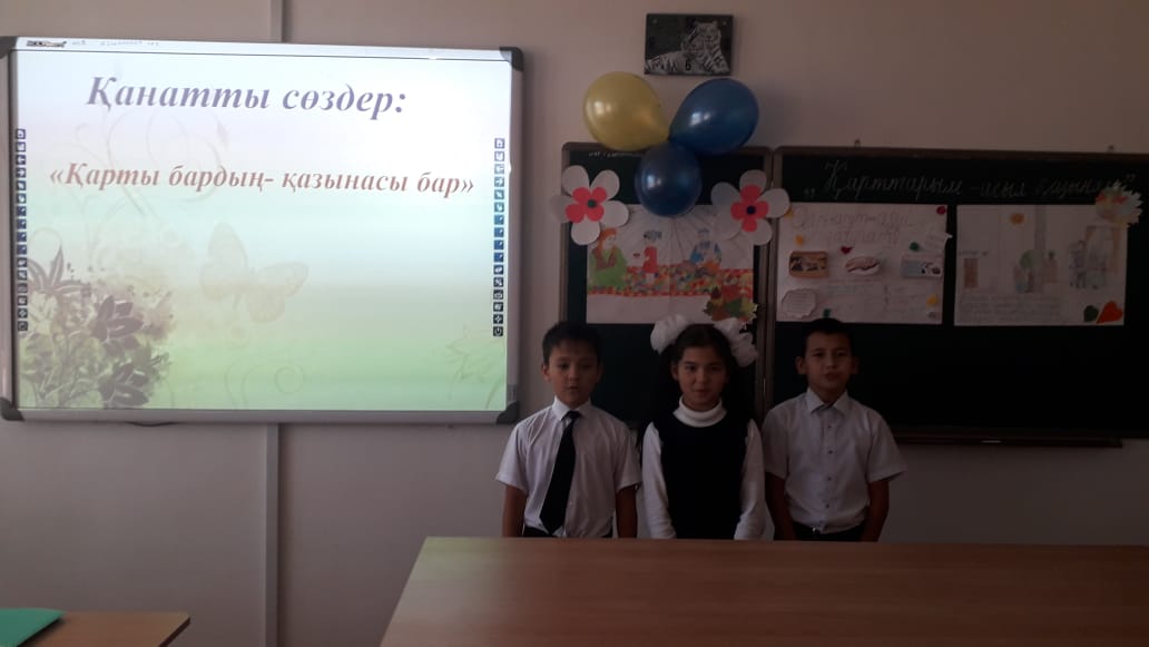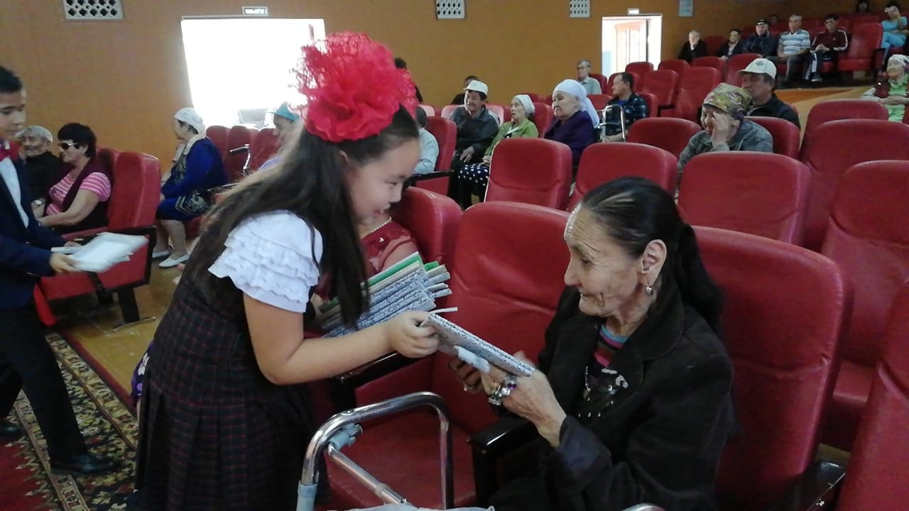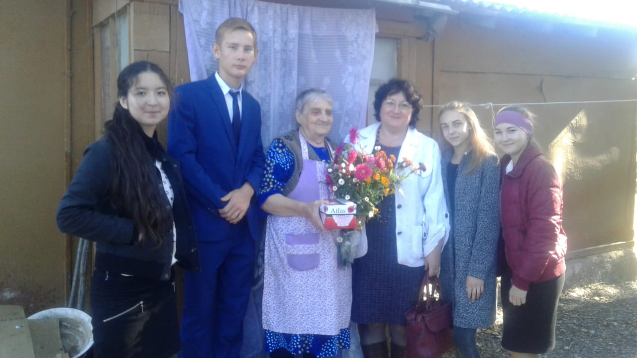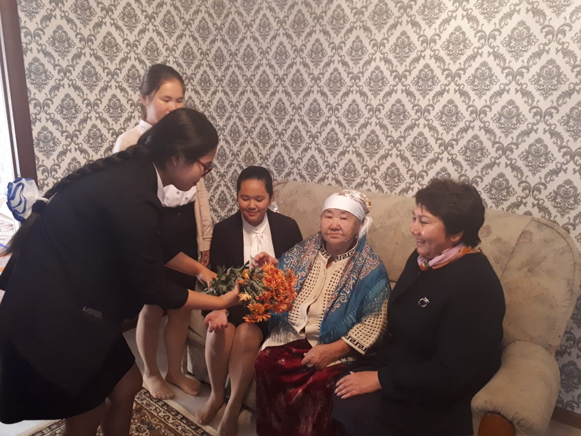 "Қарттарым- асыл қазынам" демекші 11"А" сынып оқушылары 1- қазан күні ауылымыздың қариялары: Иносова Ибагүл мен Көбен Ақжарқынды мерекесімен құттықтады. Оқушылар үлкен кісілерге көңіл бөліп, жылы лебіздерін білдірді. Көнекөз қарттар балаларға мейірімдерін төгіп, алғыстарын білдірді. "Баталы ер- көгерер" дегендей шəкірттерімізді мейірімді азамат болары сөзсіз.