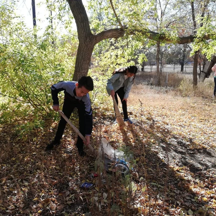 "Жас ұлан" балалар ұйымының оқушылары шығып, мектеп маңайын қоқыстардан тазартты.