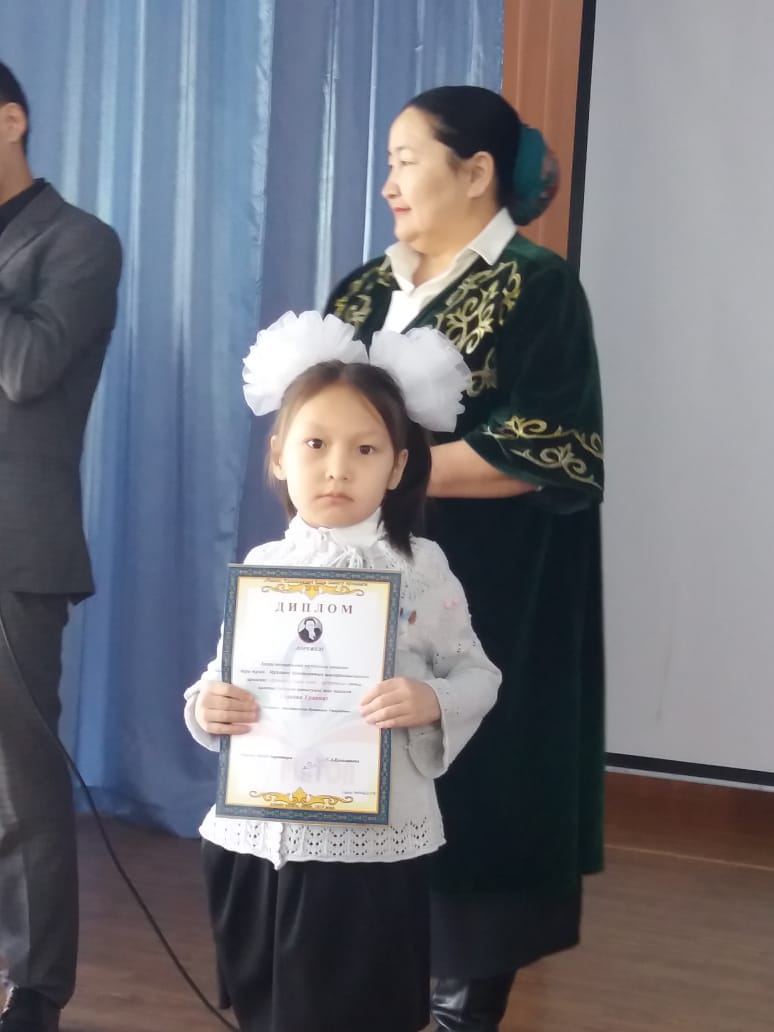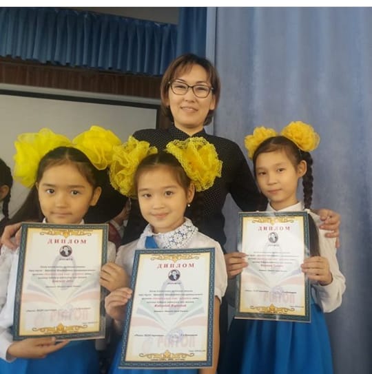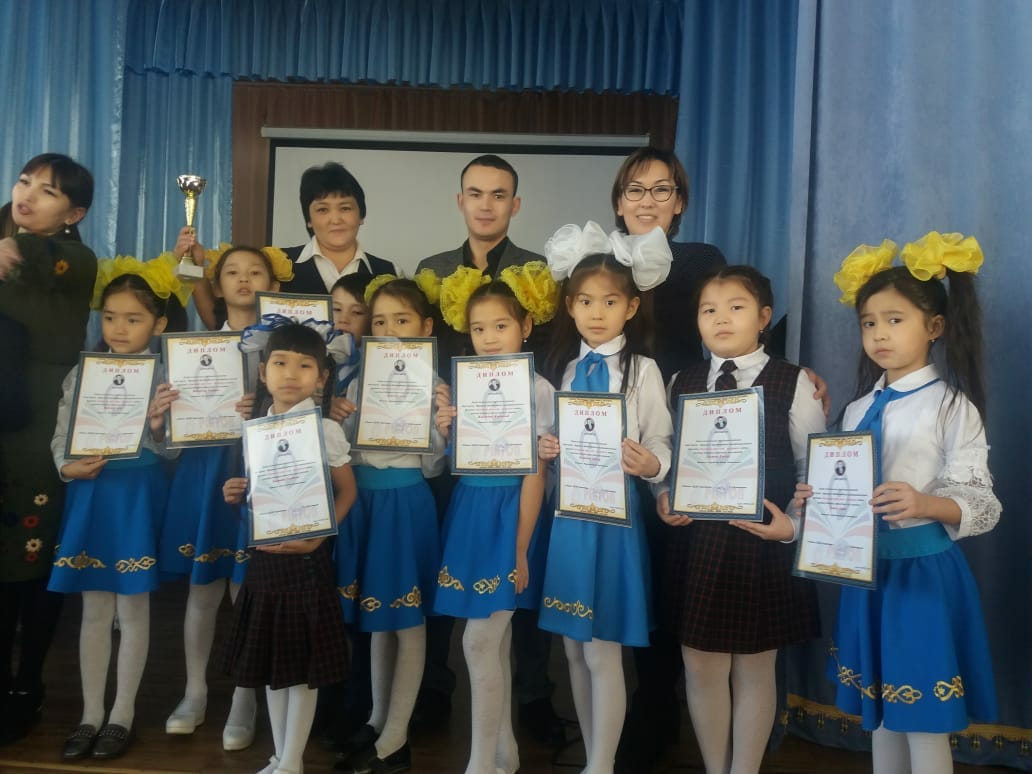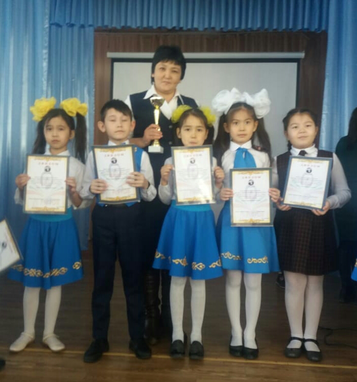 Мектепалды даярлық тобының тәрбиеленушілері Серікқали Ислам 1 орын, жетекшісі С.В.Уразгулова; Скакова Еркеназ 2 орын, Жамаладин Жансая 3 орын, жетекшісі К.У.Мамбеткулова; 1 «А» класс оқушысы Байтөре Толғанай 3 орын жетекшісі Р.Д.Иносова; 2 «А» класс оқушылары Кәмел Айша 2 орын; Қалдыбай Кәусар, Өмірбек Мақсат, Қойгелді Әсем 3 орын жетекшісі Ж.Т.Жұрманова; 2 «Б» класс оқушысы Досжан Кәусар 3 орын, жетекшісі: Ж.Т.Нурлыбаева; 3 «А» класс оқушылары Қойгелді Әсел 1 орын; Жайлыбай Жарқынай, Маликова Тоирис 2 орын, жетекшісі О.Т.Кемалова; 5 «А» класс оқушысы Сапарғалиева Әсемгүл 3 орын, жетекшісі: А.Б.Өтепова;