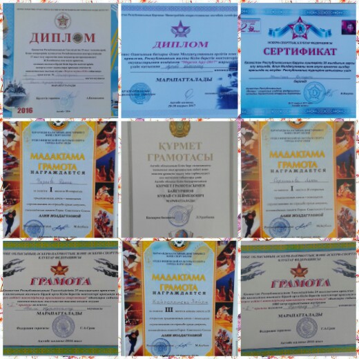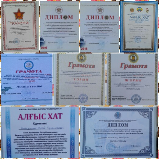 - Ақтөбе қаласы педагогтары арасында өткен президенттік тест сынағында 1 орын, медаль;