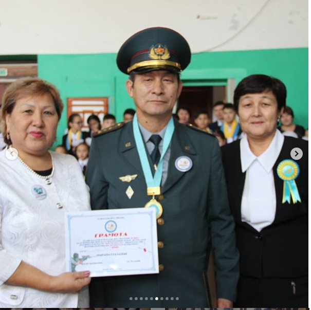 Алғашқы әскери дайындық пәні мұғалімі К.С. Байгуринов өскелең ұрпақтың патриоттық тәрбиесін дамытуға қосқан үлесі үшін: