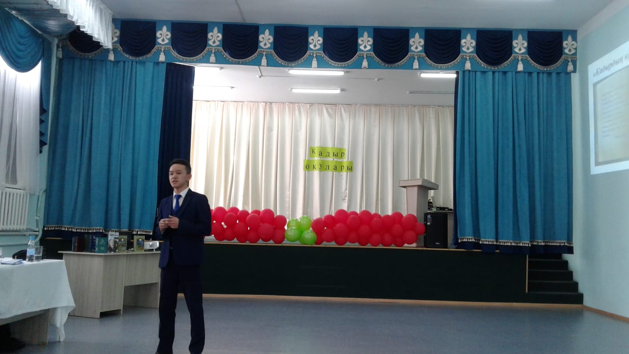 9 «А» класс оқушысы Айтенов Сәулет "Сөздің бәрі құдіретті" - Қадыр өлеңдерін жатқа мәнерлеп оқу бағыты бойынша қатысты. Жетекшісі Байдовлетова Б.С.