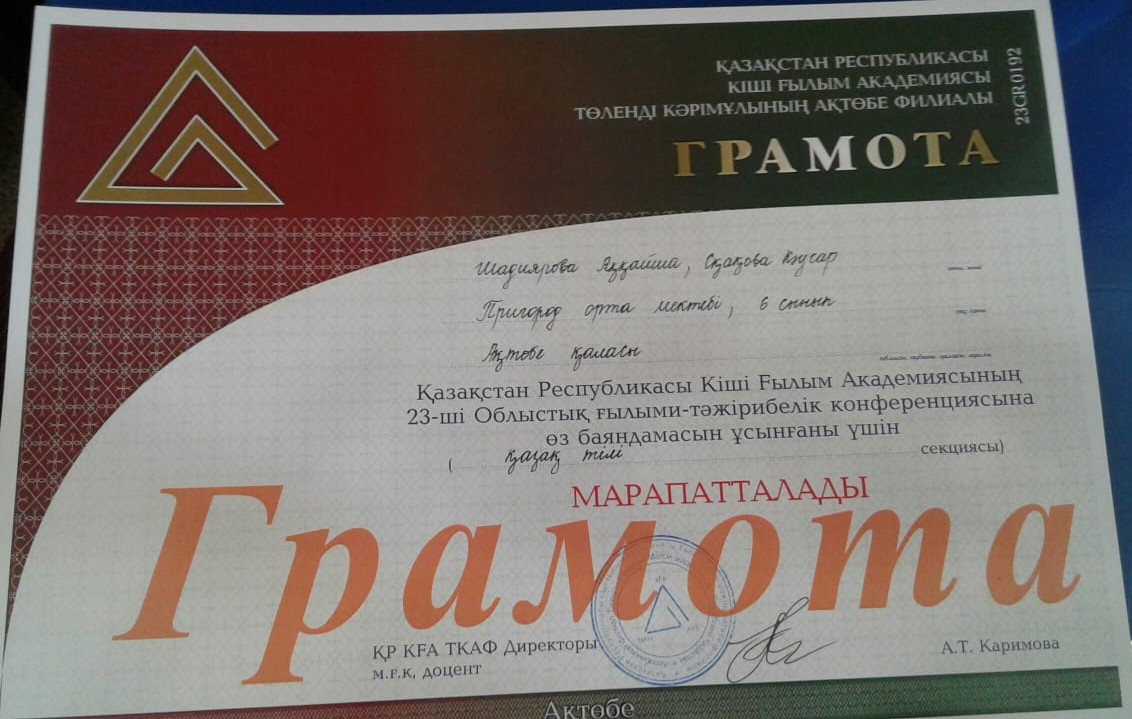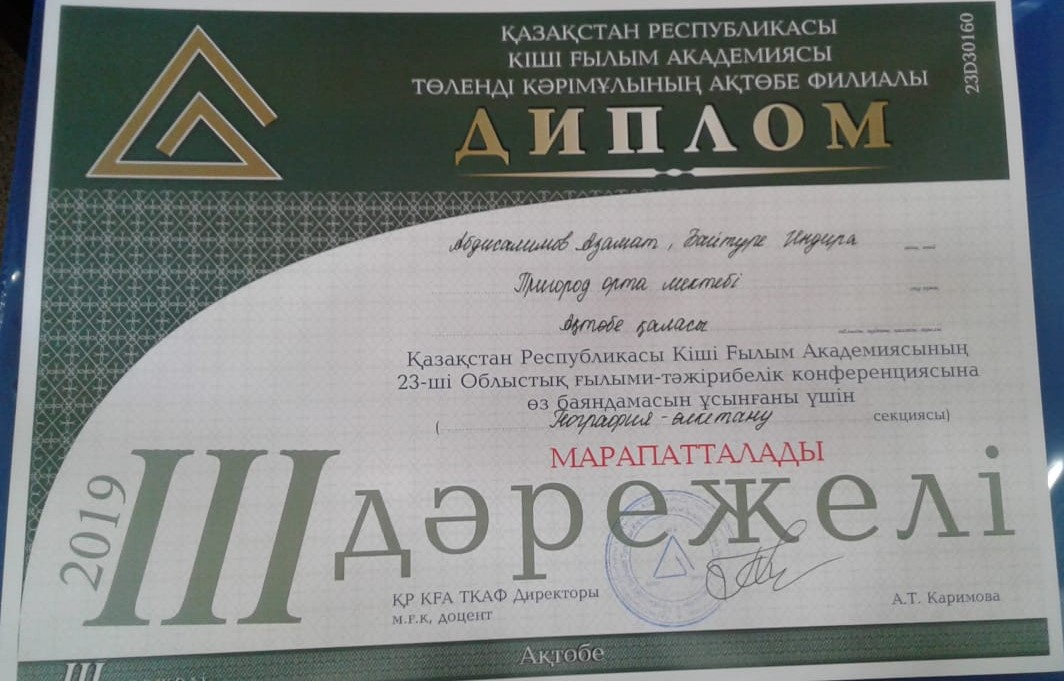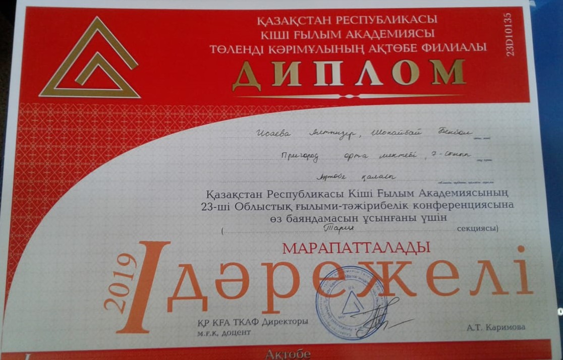 31 наурызда өткен Қазақстан Республикасы Кіші Ғылым Академиясының 23-ші Облыстық ғылыми -тәжірибелік конференциясына мектебіміздің оқушылары қатысып, жүлделі орындарға ие болды.