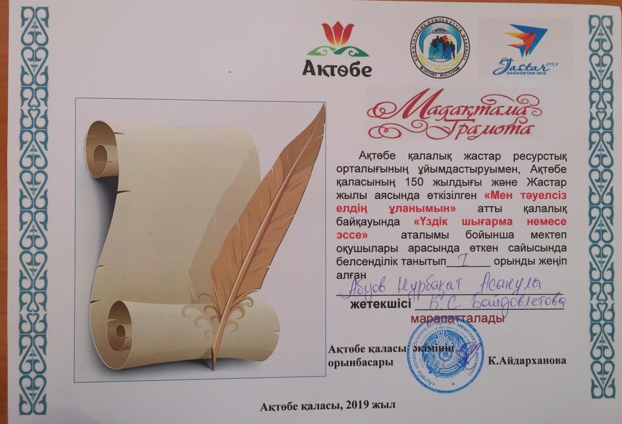 Байқауға Пригород орта мектебінің оқушылары белсене қатысты. «Біз Тәуелсіз елдің ұланымыз, болашағымыз. Елімізді, жерімізді сүйеміз»- деп елімізге арнаған жүрекжарды өлеңдері мен шығармаларын ұсынды. 11 «А» класс оқушылары Абуов Нұрбақыт, Мұсағалиева Құралай «Үздік шығарма немесе эссе» бағыты бойынша І орын иеленді. Жетекшісі Б.С.Байдовлетова; 6 «А» класс оқушысы Хаббасов Нұрислам «Үздік ән» бағыты бойынша ІІ орынды иеленіп жеңіс тұғырынан көрінді. Жетекшісі Г.Ж.Рахметова. Ата-аналары мен ұстаздарының үміттерін ақтай білген шәкірттерімізді жеңістерімен құттықтай отырып, болашақта еліміздің өркендеуіне атсалысуларына тілектеспіз! Сайысты ұйымдастырып, өткізген Ақтөбе қалалық жастар ресурстық орталығына алғысымызды білдіреміз.
