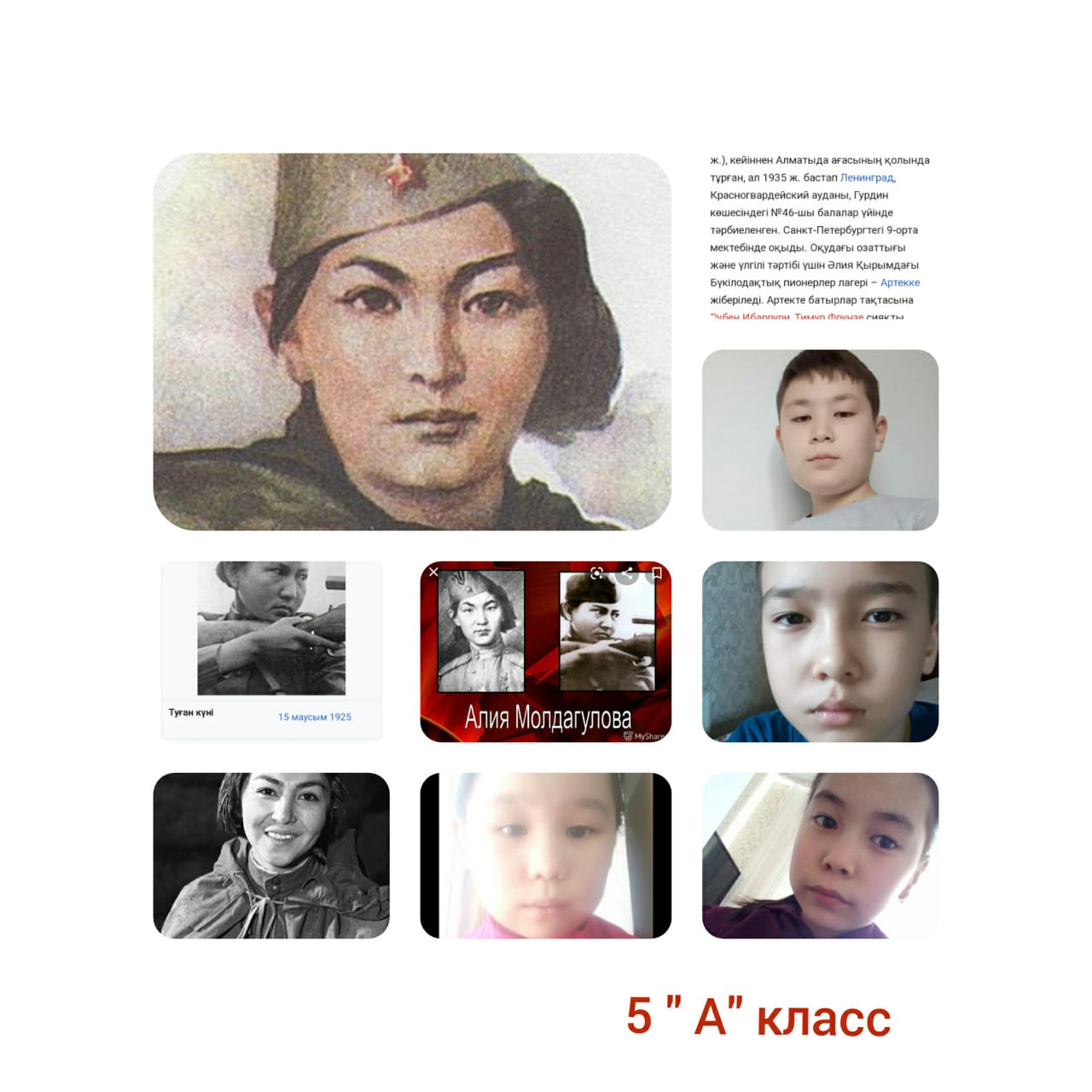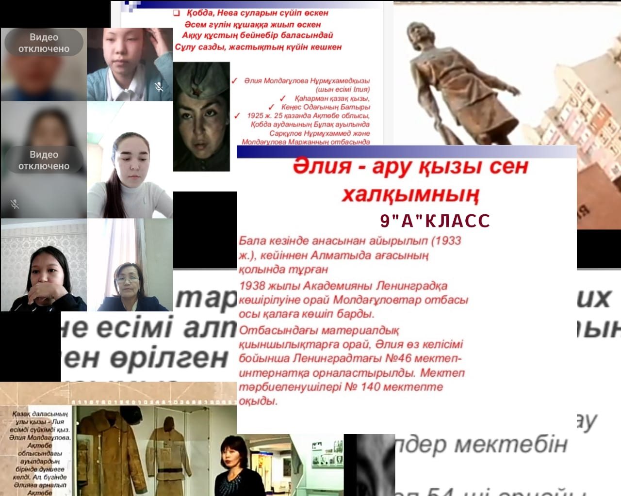 Мектебімізде қазақтың мерген қызы Әлия Молдағұлованы еске алуға арналған іс-шаралар өткізілді. Біздің даңқты жерлесіміздің өмірі мен ерлігіне арналған онлайн сынып сағаттары өткізілді. Оқушылар сынып сағаттарында