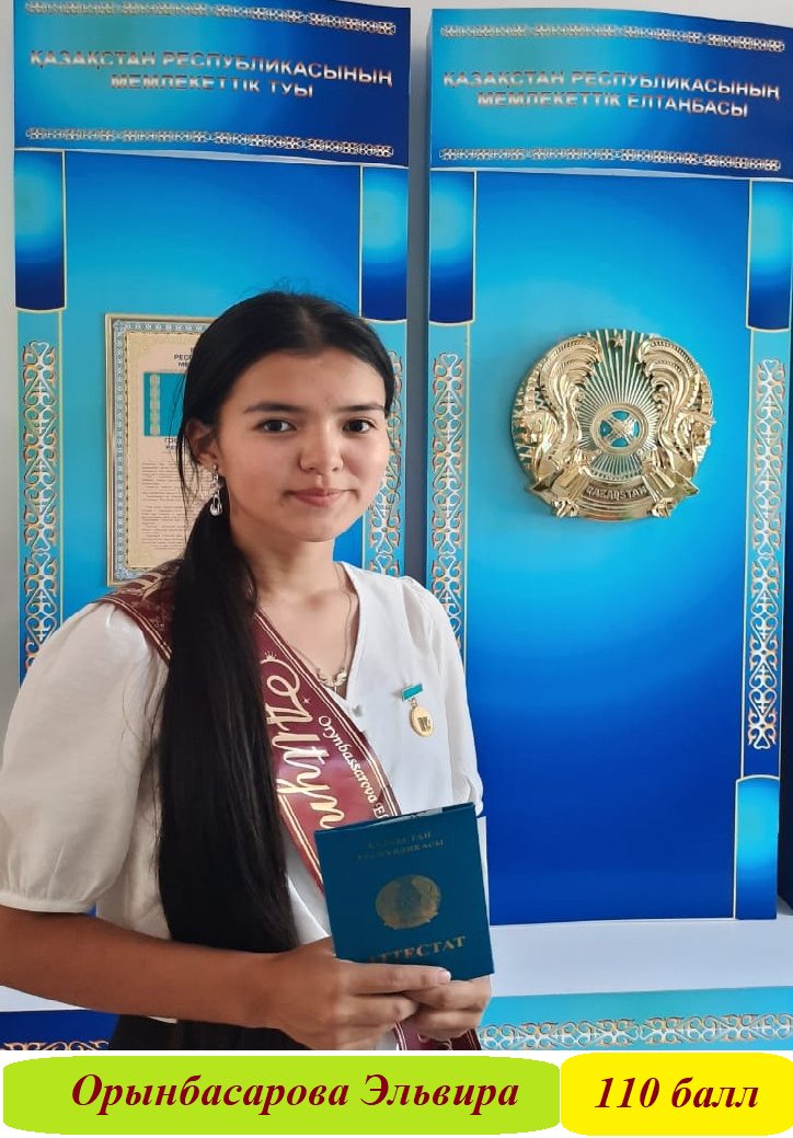11 «А» сыныбының түлегі Орынбасарова Эльвира «Алтын белгі» төсбелгісінің иегері.