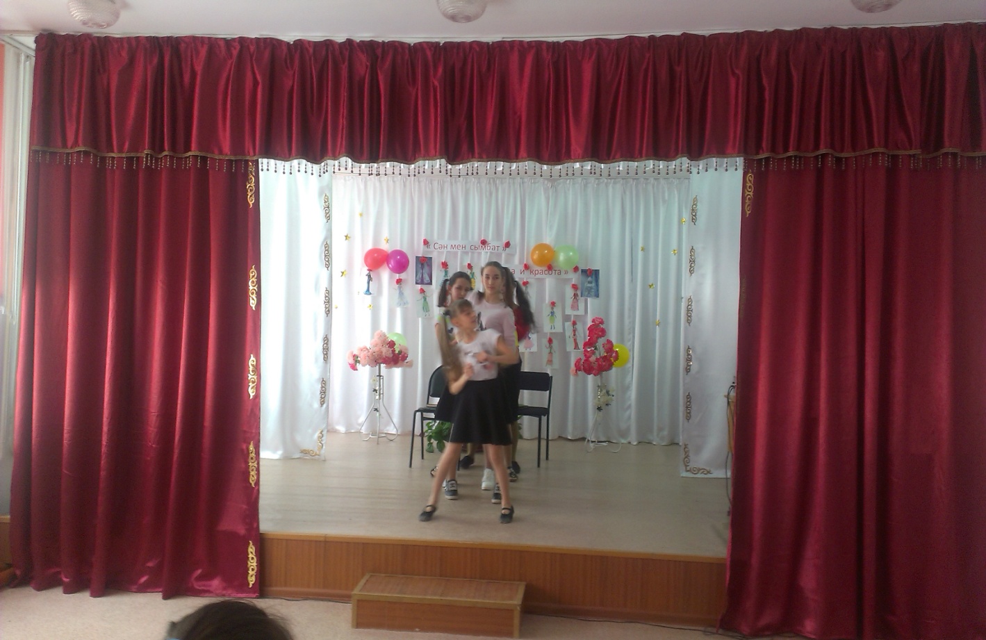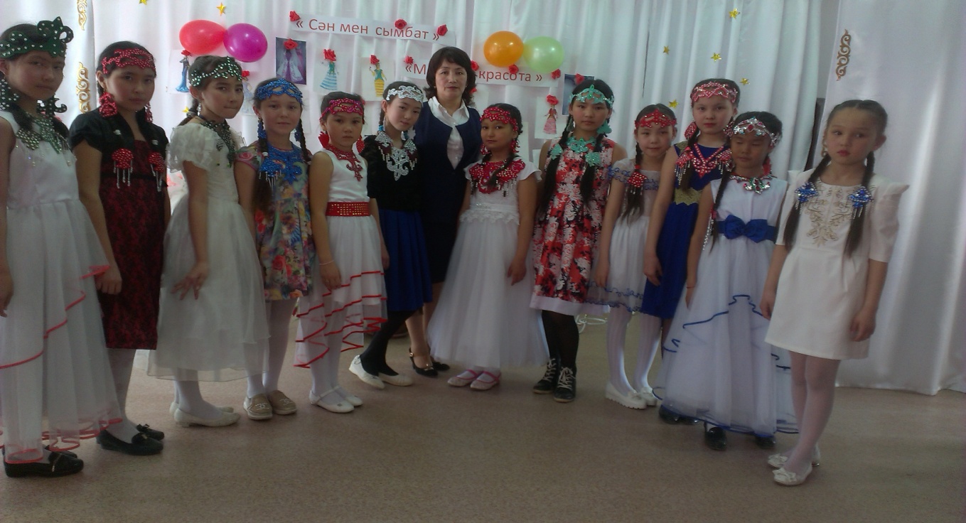 13.04 күні технология пәні мұғалімі Мустафина Б.А. 5-11-кластар аралығында кластан тыс «Сән мен сымбат» кешін өткізді. Кештің мақсаты: қыз баланың бойындағы ұлттық дәстүрге сай қасиеттерін таныта білу, оқушылардың танымдық және шығармашылық қабілетін, шеберлігін дамыту, көпшілік алдында өзін - өзі ұстай білуге, мейірімділікке тәрбиелеу. Кеште қыз балалар өздері тіккен әшекей бұйымдарымен, фетрден дайындаған сөмкелерімен, камзолдарымен, әр түрлі шаш өрім үлгілерімен, мата қиындысынан аксессуарлар үлгісін көрсетті..Кеш өте әсерлі, тартымды болды .