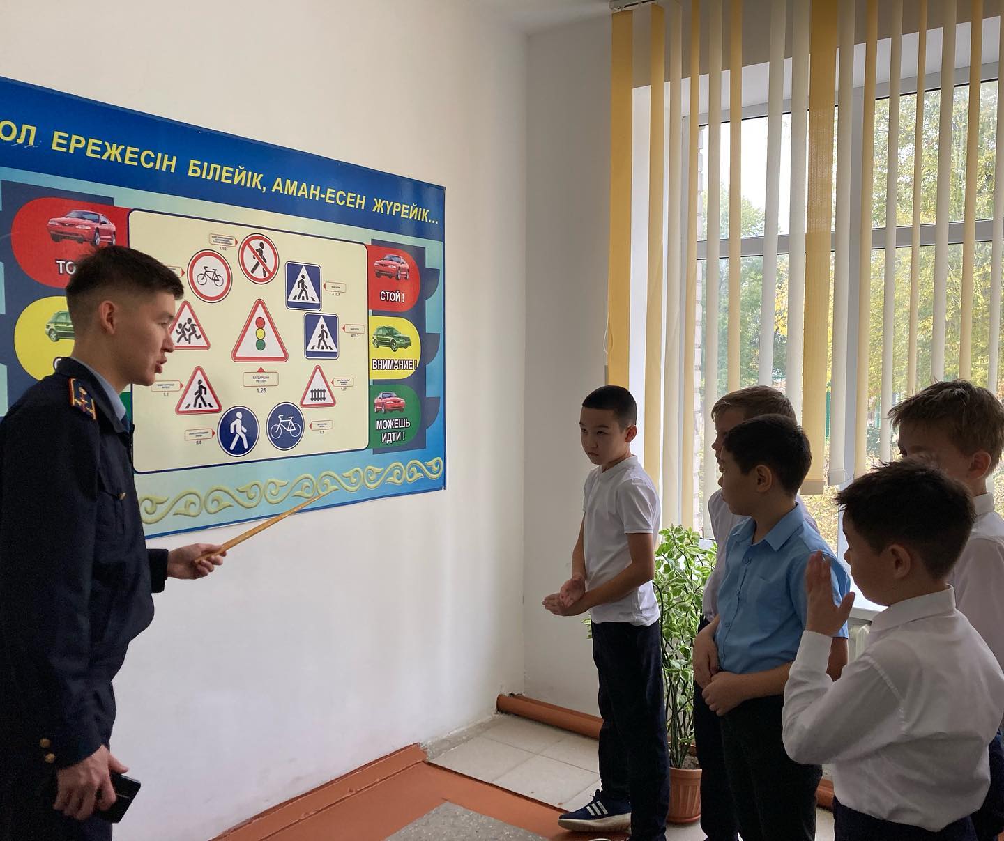 13 қазан күні, бастауыш буын оқушыларына мектеп инспекторы Үкібаев Б. А. жол ережелерін түсіндірме жұмыстарын жүргізді