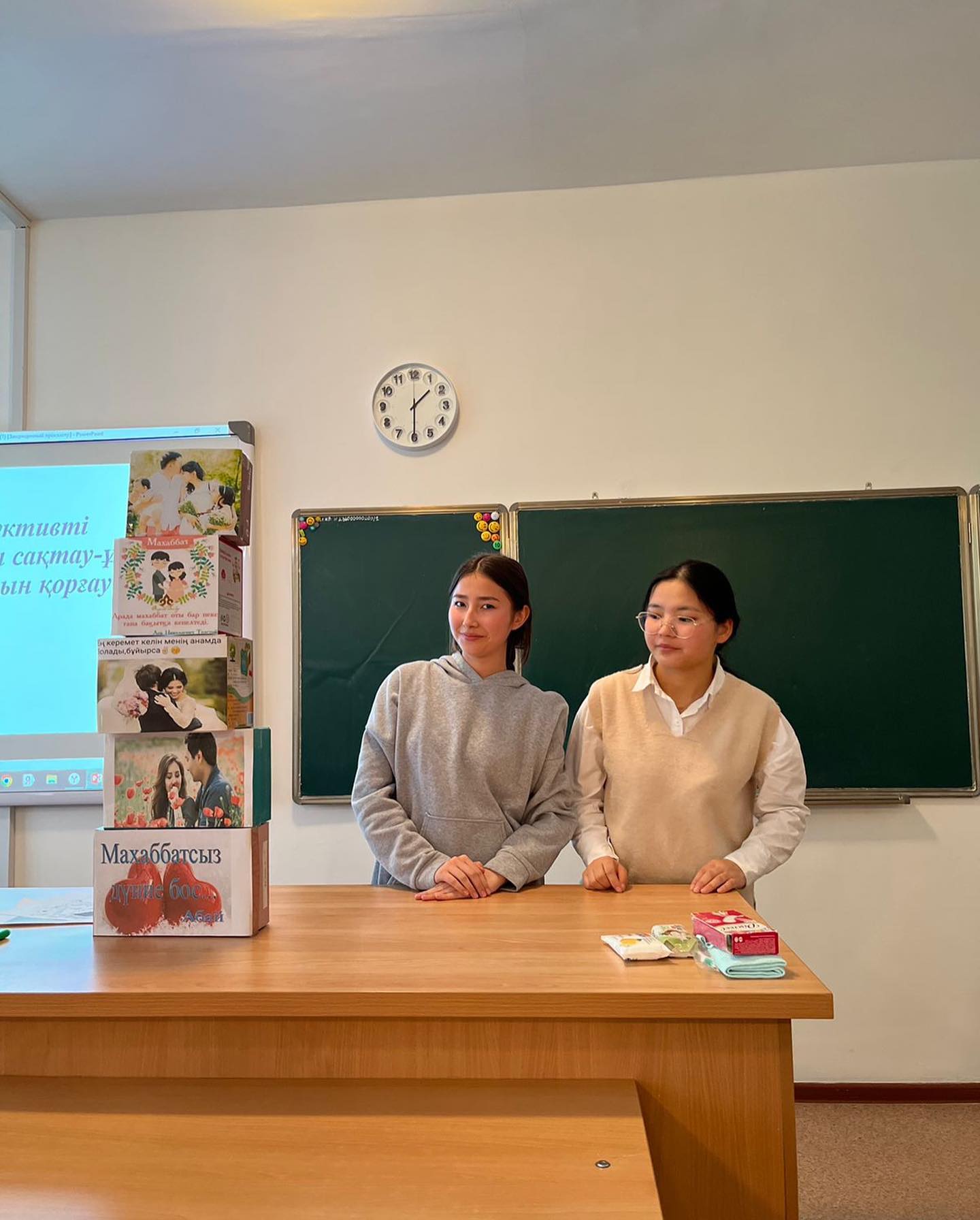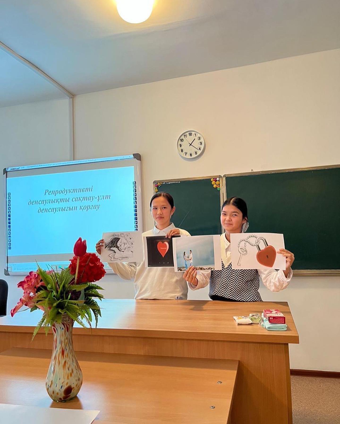 8 - 11 сынып қыз балаларымен жасөспірім қыздардың дамуы туралы дұрыс түсінік қалыптастыру, қызбаланың жыныстық жетілуі, жеке бас гигиенасы және салауатты өмір салты туралы ақпарат беру мақсатында "Жасөспірімдердің репродуктивті денсаулығын сақтау - ұлт денсаулығын қорғау" тақырыбында тренинг элементтерімен дөңгелек үстел өтті. Биология пәні оқытушысы Нурбаева М.Қ, мектеп медбикесі Л.Ж.Сагиева қыздар ағзасының анатомиялық - физологиялық ерекшеліктері, қыздың гигиенасы және салауатты өмір салты, жасөспірім қыздардың репродуктивті денсаулығына жауапкершілікпен қарау туралы толық ақпарат берсе, педагог - психолог Сисенгалиева Б.М. жасөспірімдердің психологиялық мінез - құлық ерекшеліктерін тренинг элементтері арқылы түсіндірді.