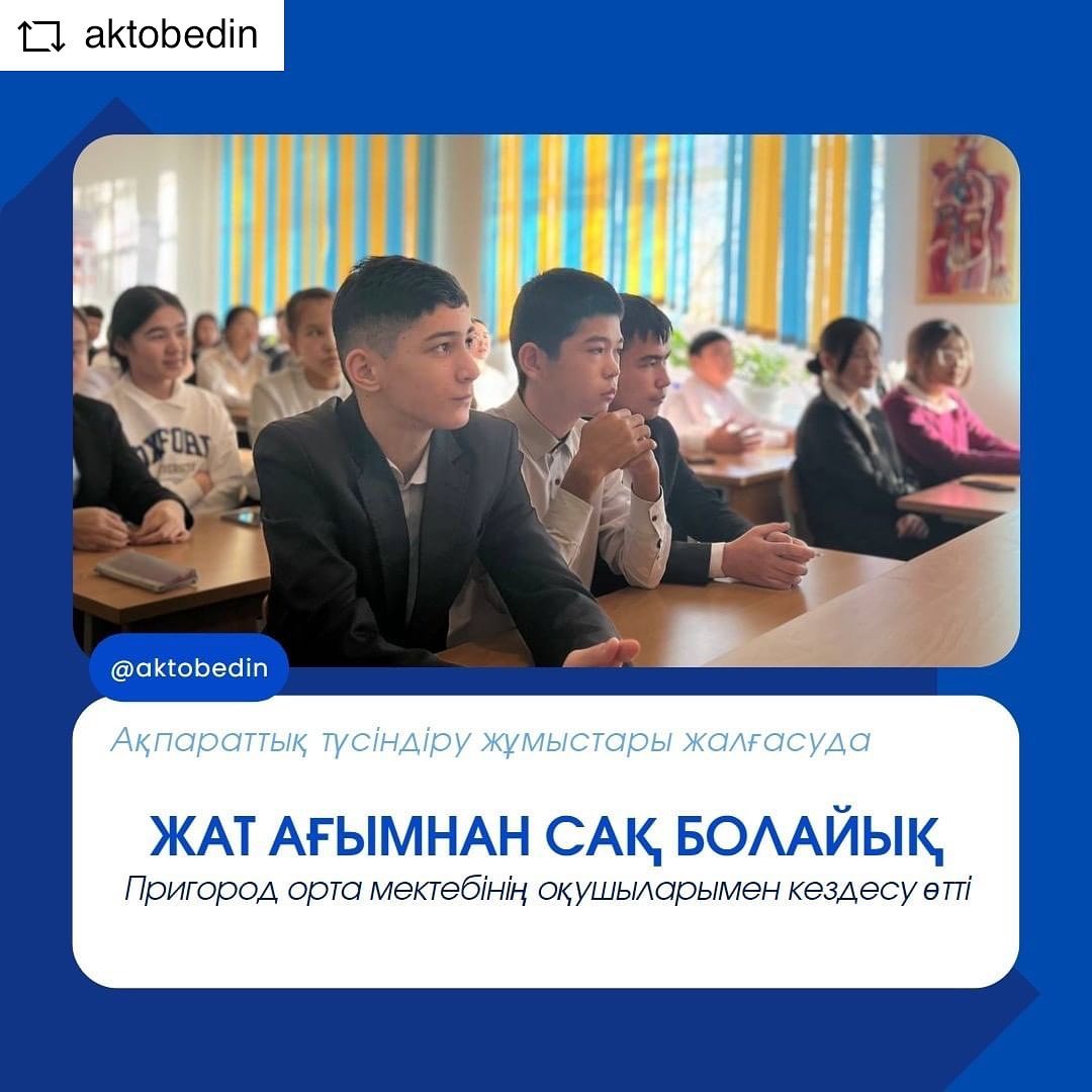@aktobedin with @get__repost__app Ағымдағы жылдың 30 қарашасында діни сауаттылықты қалыптастыру, теріс діни ағымдардың радикалды идеологиясының таралуының алдын алу мен экстремистік әрекеттердің қоғамға келтіретін ықпалдары туралы түсіндірмелік жұмыс жүргізу мақсатында Пригород орта мектебінің оқушыларымен кездесу өтті.