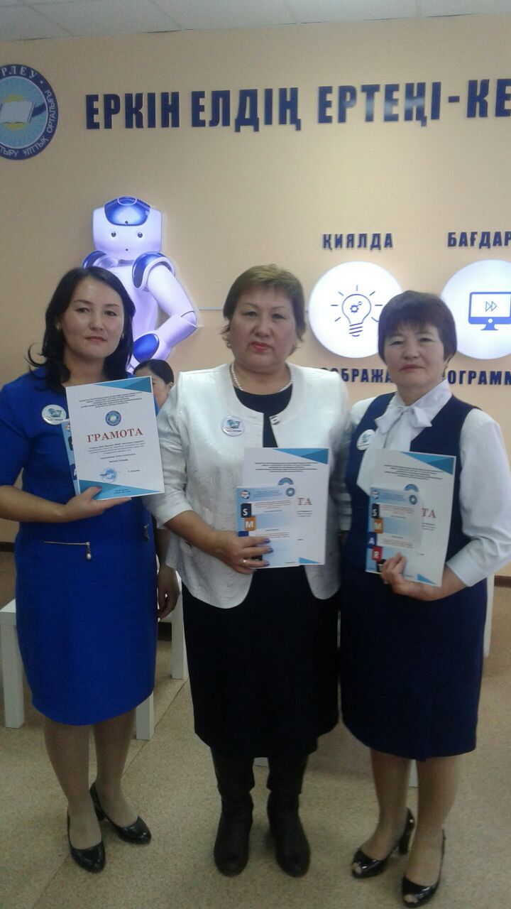 10 қараша күні "Ақтөбе Өрлеу" институтында «Білім берудің жаңа парадигмасы: SMART- мұғалімнен SMART- мектепке» тақырыбындағы облыстық ғылыми – тәжірибелік конференциясында Пригород орта мектебінің директоры Г.Б.Жанина, математика пәні мұғалімі А.К.Абишова, информатика пәні мұғалімі А.А. Туркменбаева эксперименттік жұмыс нәтижесі бойынша көрсеткен шығармашылық ізденісі мен инновациялық идеялары үшін грамотамен марапатталды.