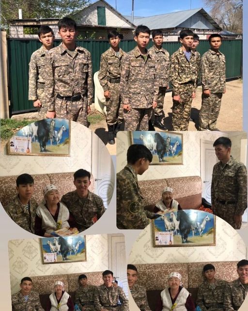 Жеңіс Күнін мерекелеу қарсаңында және "Қамқорлық" акциясын өткізу аясында АӘД мұғалімі Б. М. Таскенов пен 10 "А" сынып оқушылары еңбек майданының ардагері, біздің ауыл тұрғыны С. Ахматованы құттықтады.
