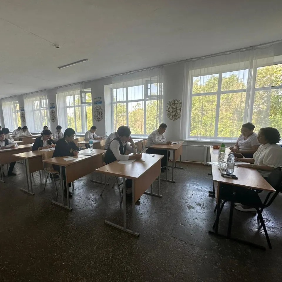 9 "А" класында русский язык и литература, 9 "Б" класында қазақ тілі мен әдебиеті пәнінен қорытынды емтихан өтуде