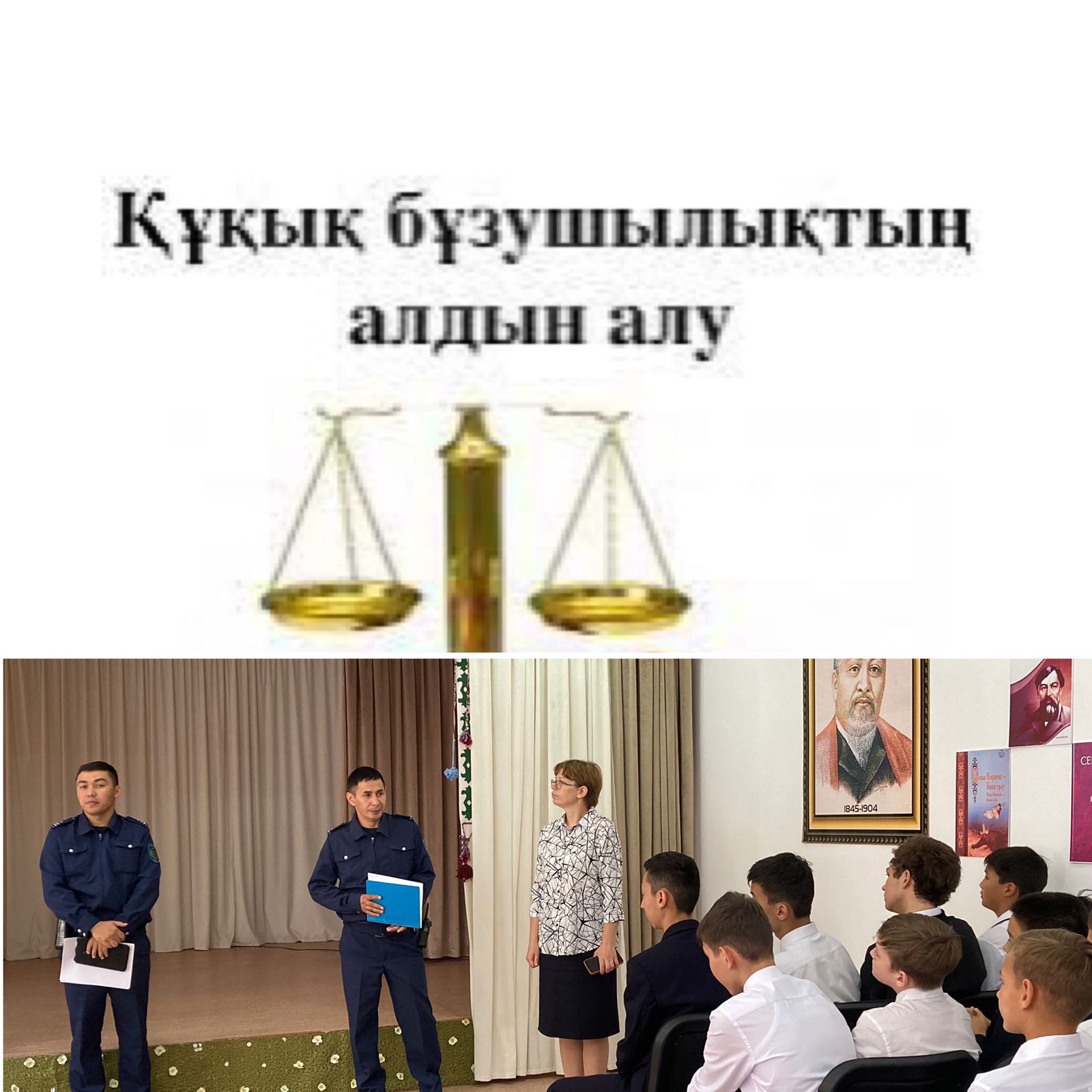 7 қыркүйек 2023 жылы 7-11 сыныптар арасында “Құқық бұзушылықтың алдын алу- басты міндет” тақырыбында жиналыс өткізілді. Жиналыстың негізгі тақырыбы бойынша мектеп испекторлары аға лейтенат: Туменбаев Ж.Г, Адаев А.М. ер балаларға зиянды заттардан, әрекеттерден аулақ болуы туралы түсіндірме жұмыстарын жүргізді.