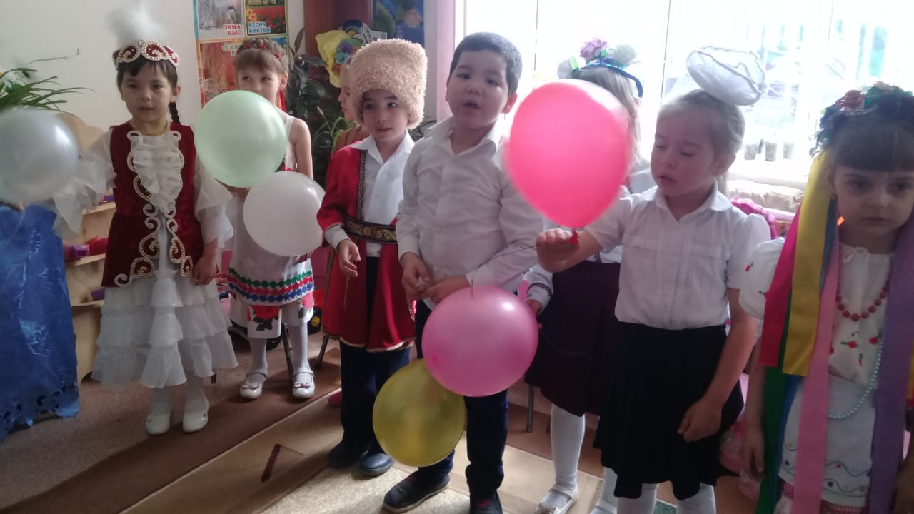 Ко дню единства народов Казахстана в мини центре"Айголек" совместно с предшкольным классом был проведен утренник под названием "Я, ты, он, она, вместе дружная семья!!"
