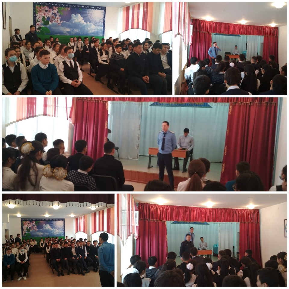 С целью профилактики правонарушений среди несовершеннолетних в Пригородной средней школе проведена встреча с представителями правоохранительных органов Орынгалиевым А, Дузбаевым Е и другими сотрудниками.
