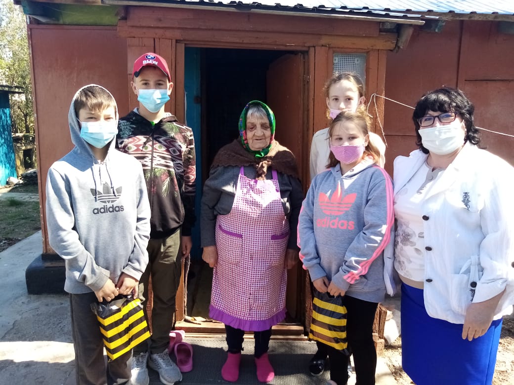 Ученики 6"Б" класса Пригородной средней школы с классным руководителем Фалалеевой Т. И. поздравили ветерана трудового фронта Овчаренко Зинаиду Дмитриевну с наступающим праздником - Днем Победы. Зинаида Дмитриевна родилась в семье Овчаренко Александры Маркияновны и Бессонова Дмитрия 21 мая 1935 года в городе Актюбинске. В семье из пяти детей была старшей дочерью. Её отец был призван на фронт в первые дни Великой Отечественной войны. Маленькая Зина, будучи совсем ребенком, вместе с матерью выполняла любую посильную для нее работу - в лихие военные годы каждая пара рук, даже детских, была на вес золота... После войны, в 50-е годы, семья переехала в Пригородный, тогда поселок только организовывался. С раннего детства приусенная к труду, не боявшаяся самой тяжёлой работы, Зинаида вместе с матерью несколько лет работала дояркой. Позже ее пригласили работать в сельский клуб помощником киномеханика.