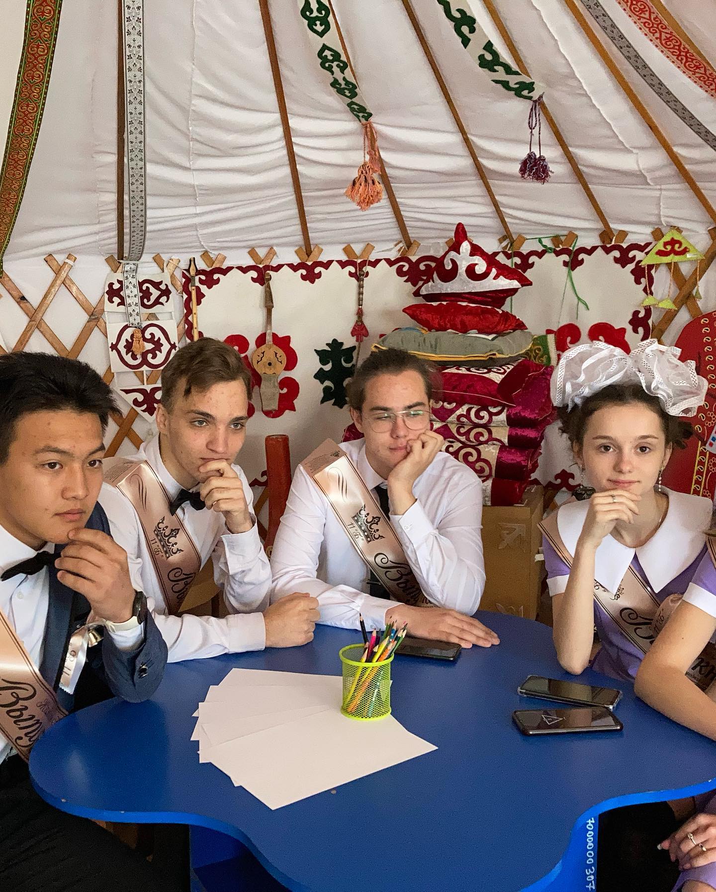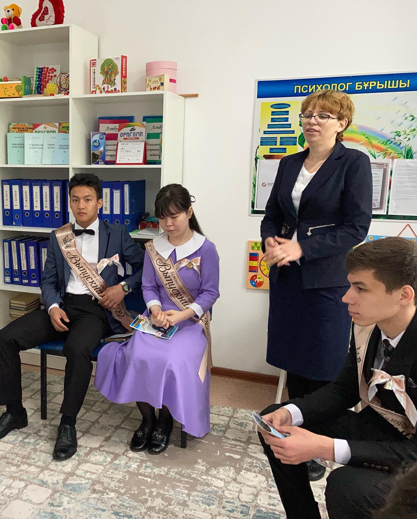 И по традиции школы у одиннадцатиклассников прошел урок с первым учителем Жылкышиевой А.Т.