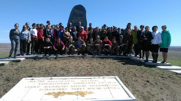 К памятнику были возложены венки и почтили минутой молчания. Мероприятие прошло под руководством директора школы – Жаниной Г.Б., библиотекаря –Тризно И.А., учителей истории –Кадыровой А.Е., Фалалеевой Т.И., организаторов по ВР –Рахметовой Г.Ж., Тимошиной А.Г.
