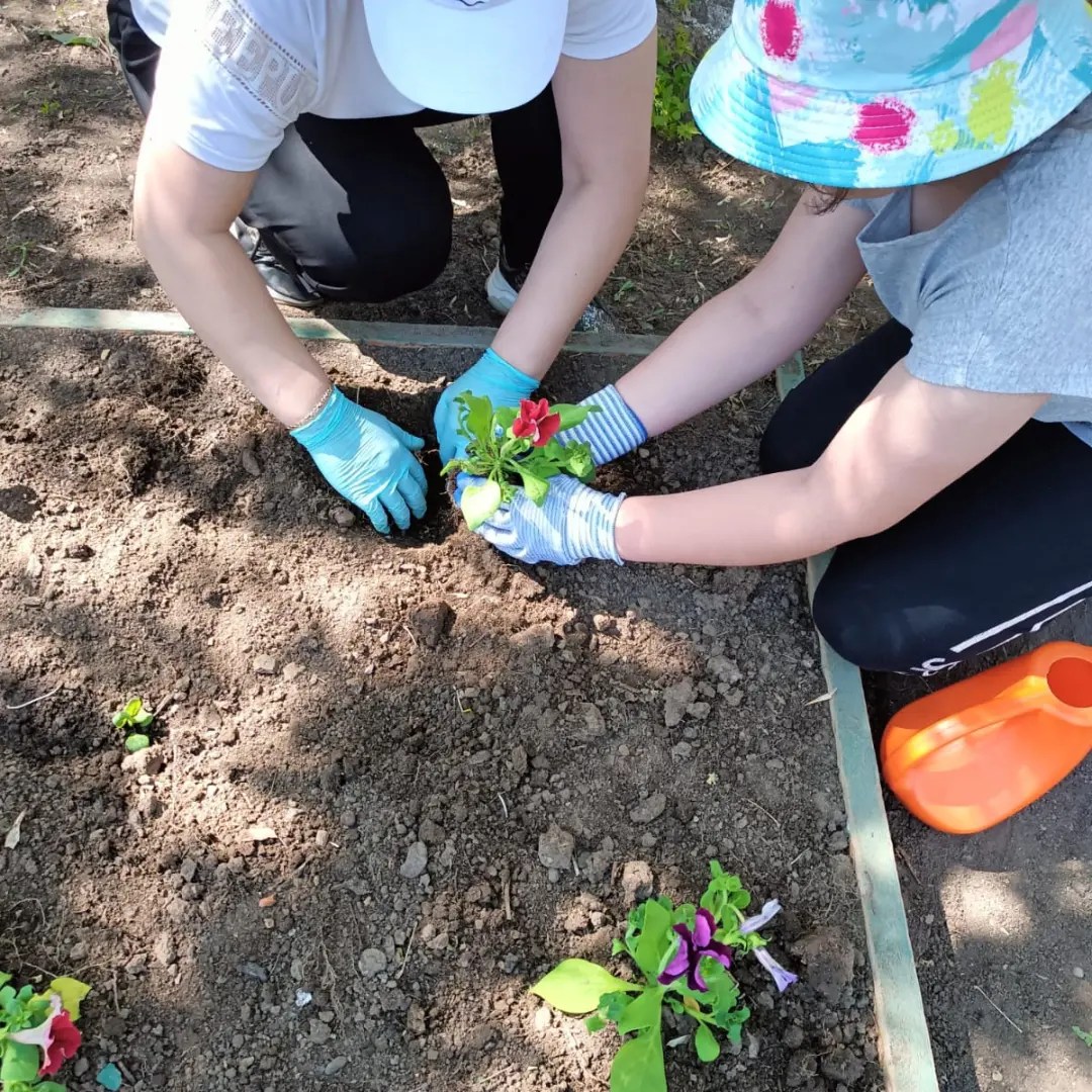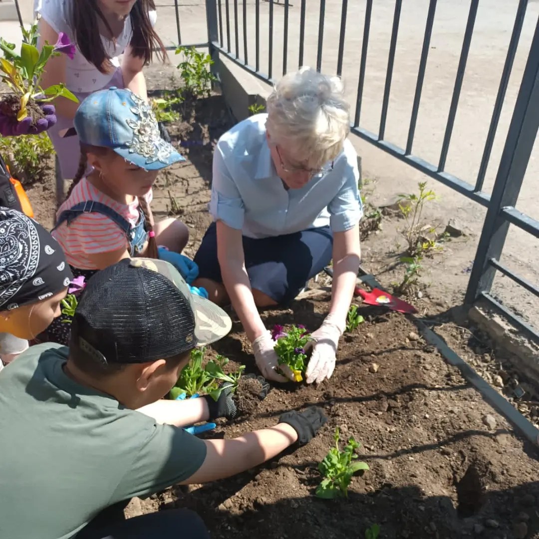 По инициативе родительского комитета класса были приобретены декоративные цветы и высажены на школьной клумбе.