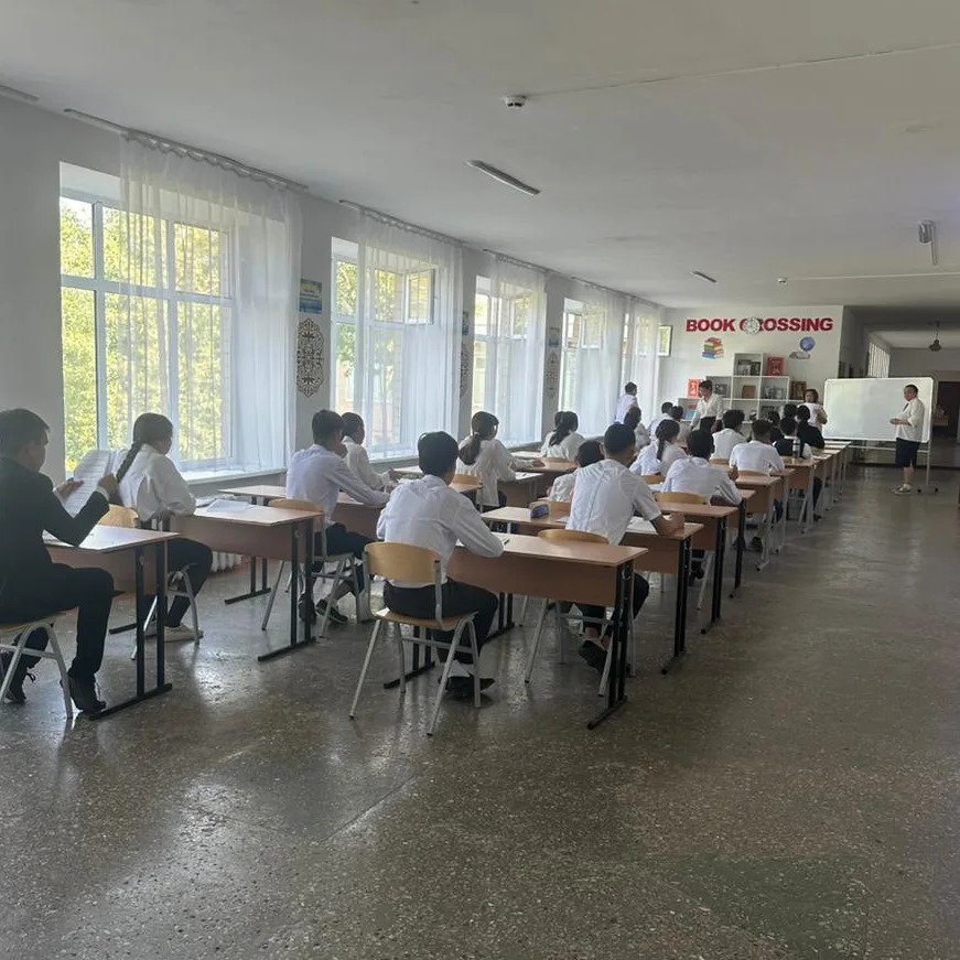В 9 "А" классе проходит итоговый экзамен по русскому языку и литературе, в 9 "Б" классе - по казахскому языку и литературе